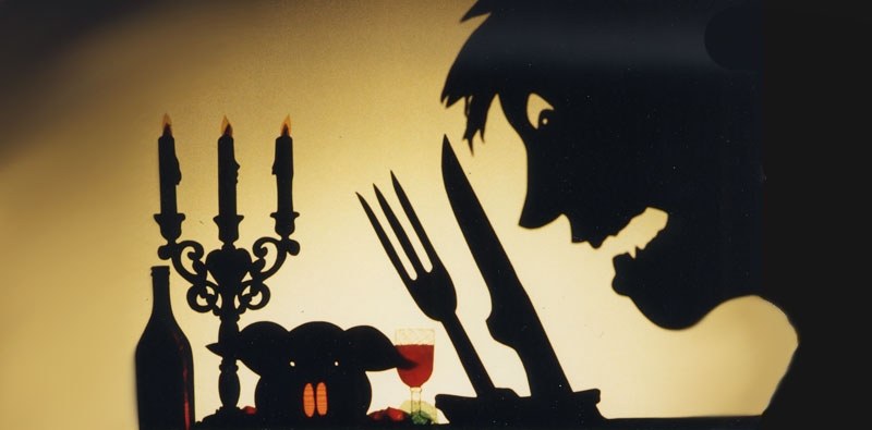 Jeux d’ombres et de couleurs Le Théâtre de l’Ombrelle jongle avec diverses techniques d’ombres auxquelles viennent pour la première fois s’intégrer les photographies. Les décors s’inspirent de l’univers pictural de Magritte, grand voyageur du réel à l’imaginaire (et vice versa) et suggèrent le surréalisme, l’absurde, l’irruption du merveilleux dans la vie quotidienne.